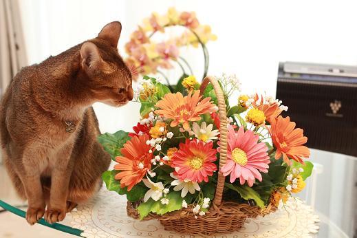 大好きなビタミンカラーのガーベラ花かご♪