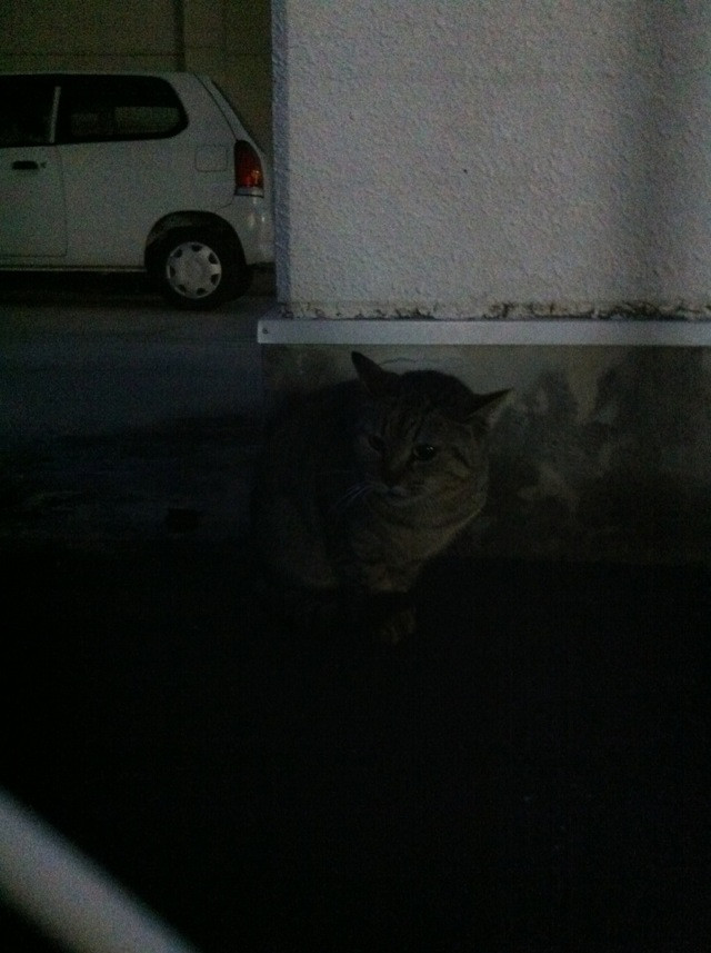 実は先々月保護された仔猫ちゃん(わたしの別のお友達の家に嫁ぎました。)が同じ餌場でついて甘えていた子です。