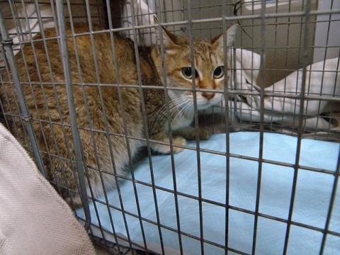 入ってからはただただじっとして鳴きもせずおとなしくしている母猫…