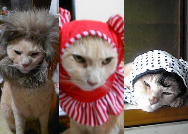 お顔にシマシマやポイントがなくて、肌色に近いせいか、かぶりものがよく似合います。