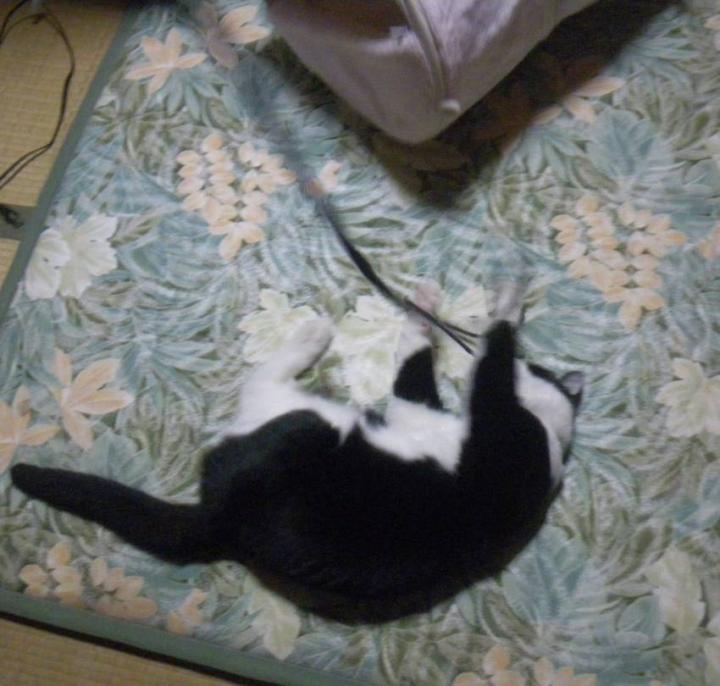 管理人「はいはい。分かりました。遊びますよ!」ヒモをピラピラ。