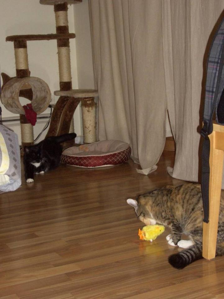 後を追いかけて走り、くわえてはどこかに持って行って隠したり、、、