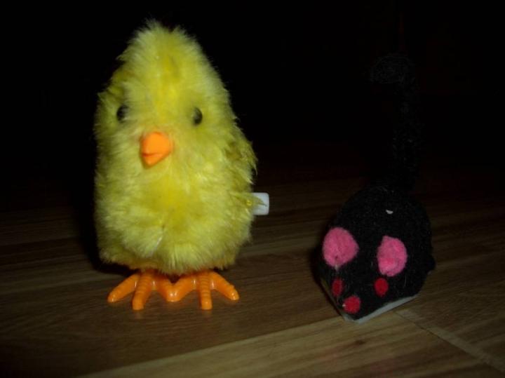 黄色いひよこのネジを回すとテクテク歩くおもちゃ^^