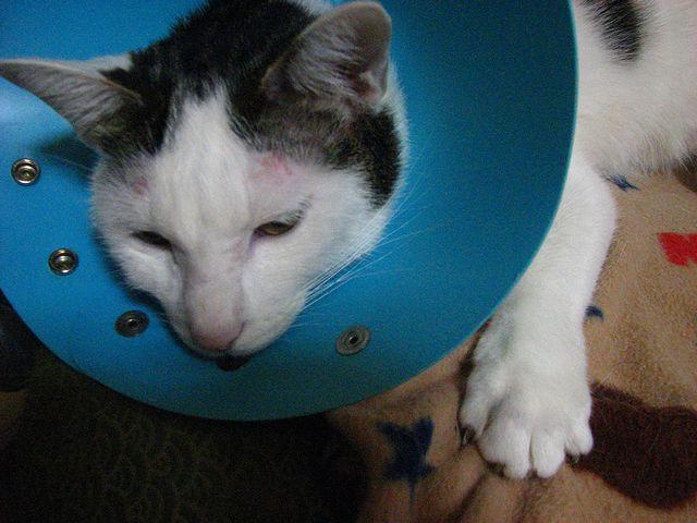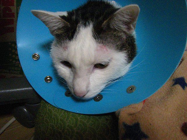 大人の猫に初めてのカラーをつけると、こんな状態になるのか・・・。