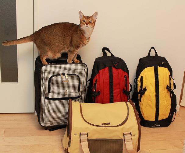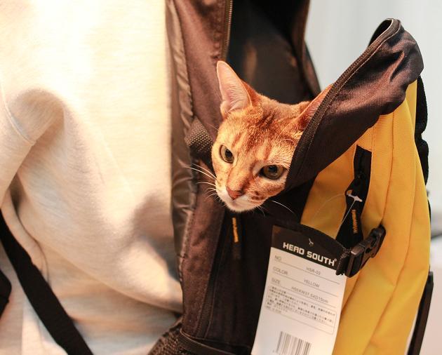 これを背負い、み~ちょを入れた肩掛けキャリーバッグと み~ちょ用品が入った