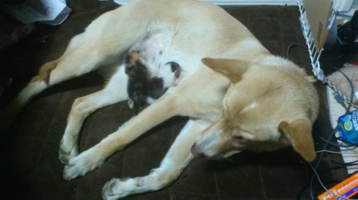 TVのバラエティ番組で「猫に母乳をあげる犬」を見たことはありましたが、本当に母性って凄いんですね……!