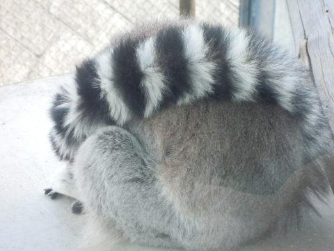 これは「ワオキツネザル」ですが、一匹凄い丸まっていましたー(笑)