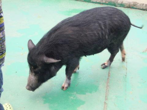 これは、動物達と触れ合える広場で触った黒豚です!意外と毛が硬くてバリバリしてました~(^0^)!