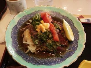 食事はもみじ肉(鹿肉)のメニューが増えており今回は鹿肉のたたきを頂きました。