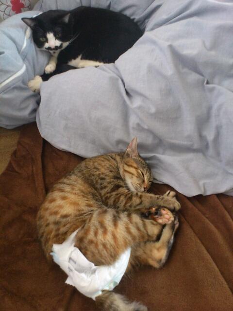 オムツ猫さん、今日で2日間ウンチ出てないなぁ、やばい