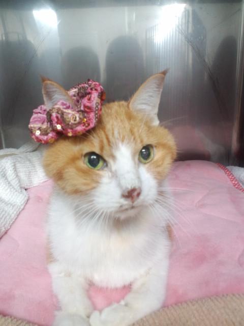 今日は病院でお留守番中にスタッフの皆さんがマリちゃんにシュシュをのっけて遊んでくださったそうです。