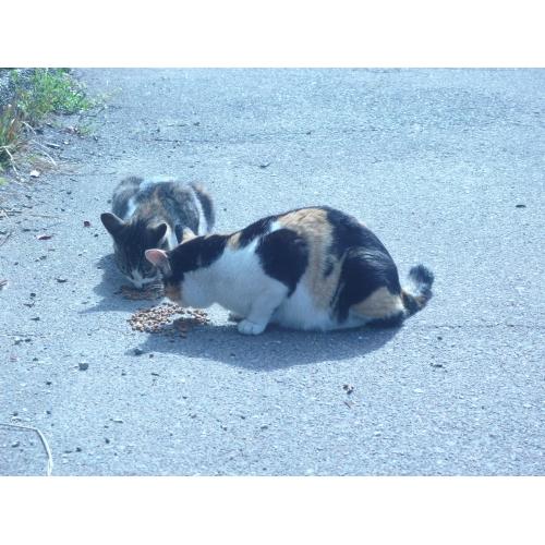 三輪車に乗った おばあちゃんが カリカリあげてた