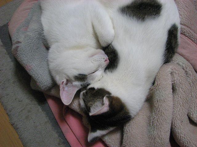 人の体にもたれたり、腕を枕にしたりして、ぺた~っとくっついて寝ようとします。