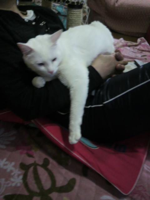 ママが、一度起きてカーテン開けてくれたからお日様がお部屋に。気持いいにゃ~ポカポカいいよ~