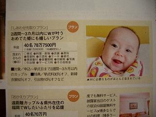 Aちゃんは福岡市の某ホテルでウェディングプランナーをしているのだが、今回そのホテルが企画した『しあわせ先取りプラン』を宣伝するにあたって、赤ちゃんの写真が欲しいとのことで、うちの娘が抜擢されちゃったのである!v(^o^)v