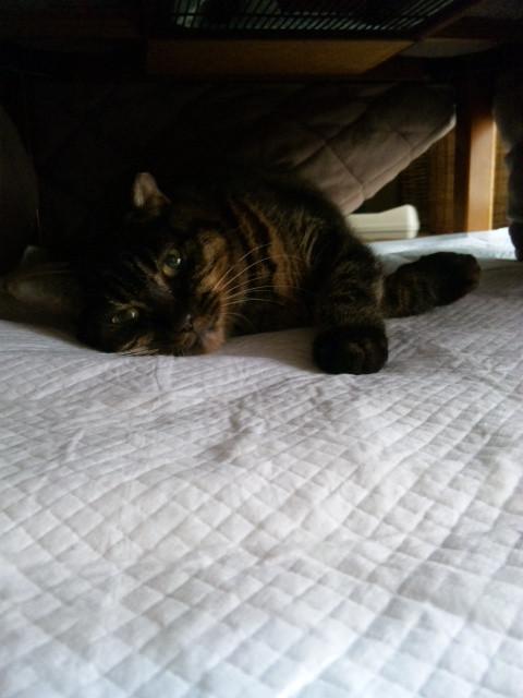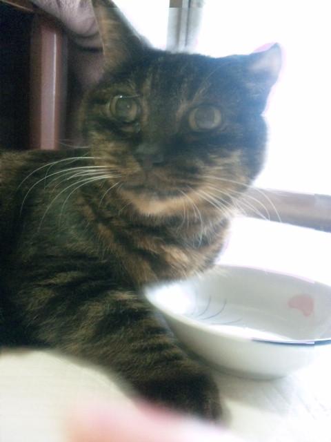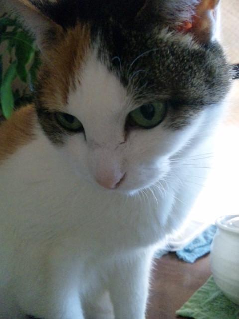 おばあちゃんとは思えないジャンプ力と盗み食いのすばやさはぴか一です。それでも三毛猫日本人。いつも控えめでさりげなくそばにいるような子です。