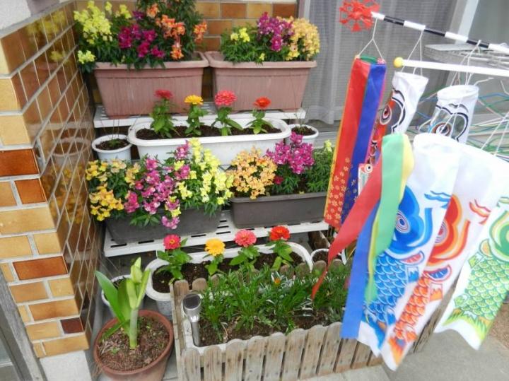 百日草ともとから植えていた金魚草。