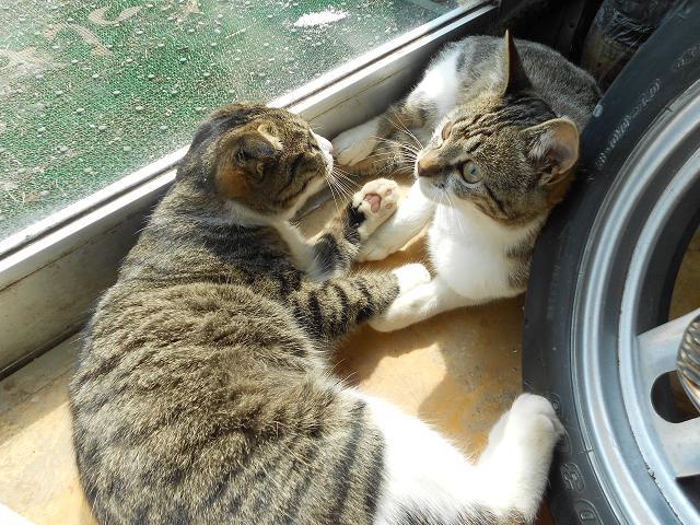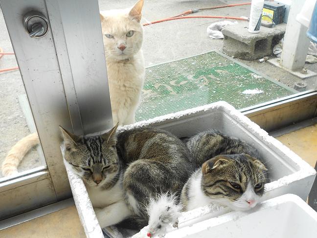 最近お気に入りの場所、発泡スチロールの箱の中、2個あるのに...。