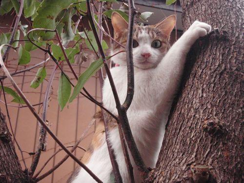 人の苦しい心中も察する事なくwこむぎは木登りに夢中ヾ(o´ω`o)ノ・*:.。.