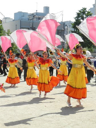 マーチング部隊のバトントワラーの体の柔らかいこと。