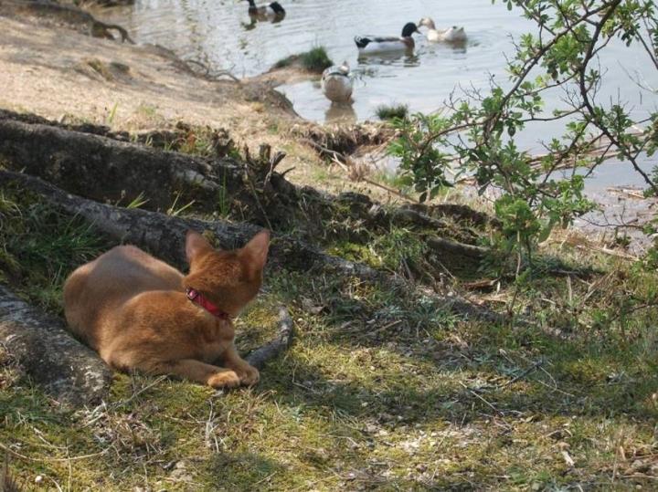 下の写真は鴨を初めて見た時の、アビ次郎の写真です。
