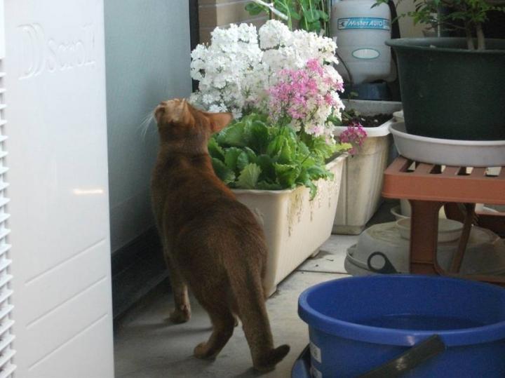 ベランダにいる虫を狙って、チャンスが来るのをひたすら待ってます。