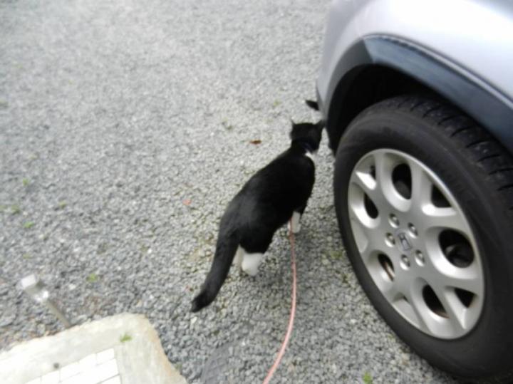 黒タンが見つめる中、トカゲ遊び。