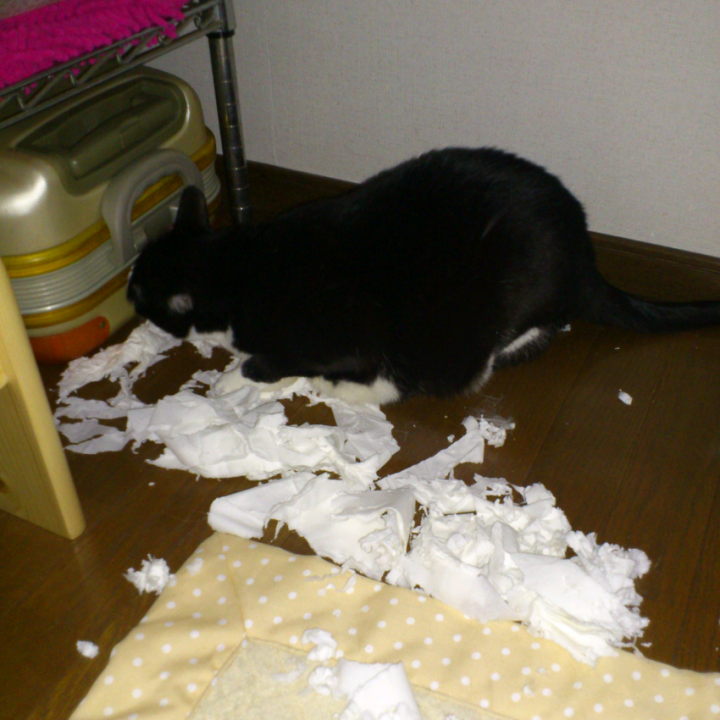 今日は久しぶりにトイレットペーパにいたずらしてたけど、