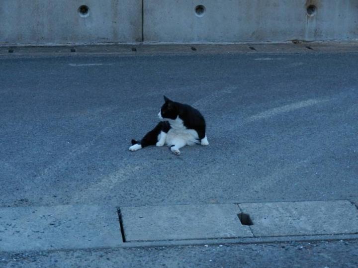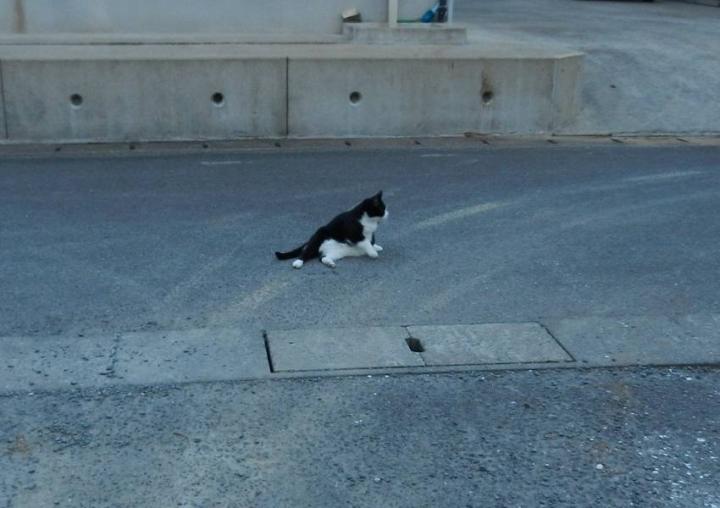 黒タンは、お隣と管理人宅との間の道路中央で監視。