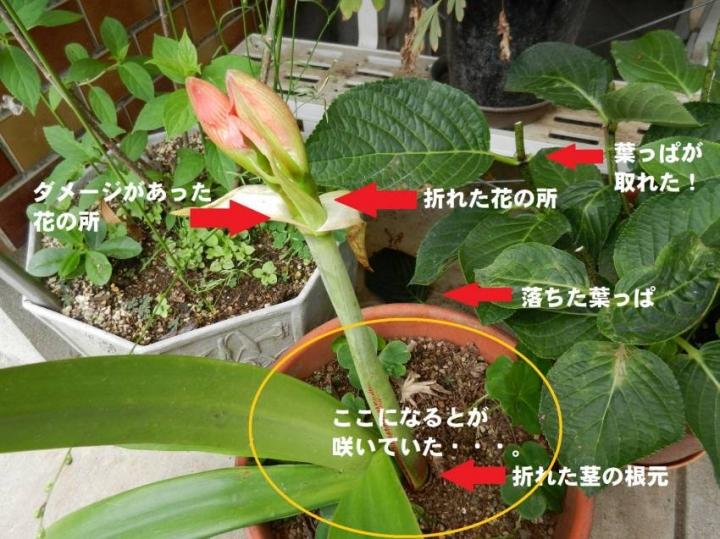 茎は根元から曲がっていたから、そのうち影響が出るだろう。