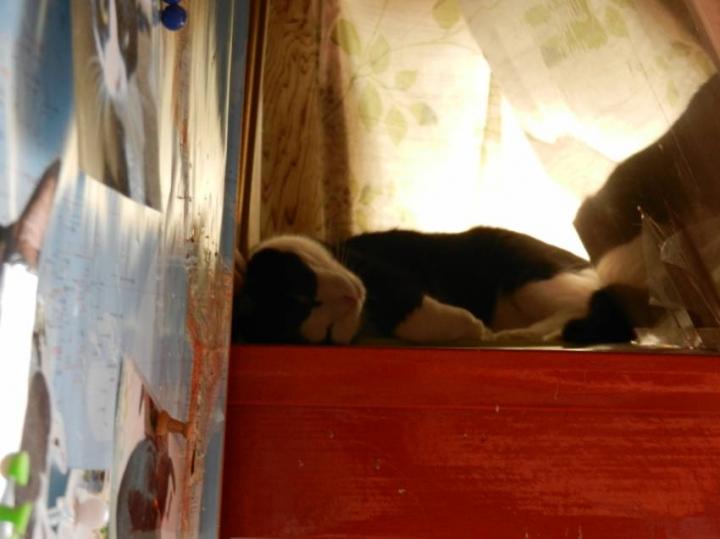 そのあと、悪童ことなるとは、キャビネットの上に上がって不貞寝。