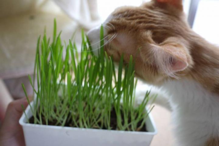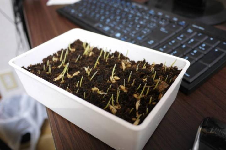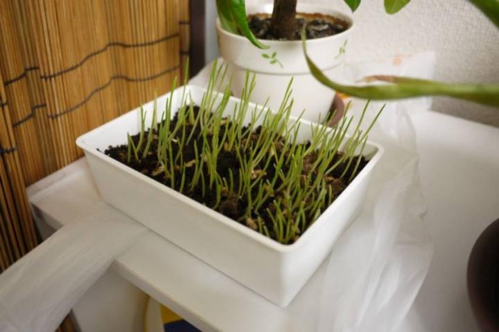 1週間前に猫草買って、種をまいていました。