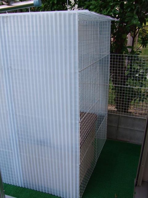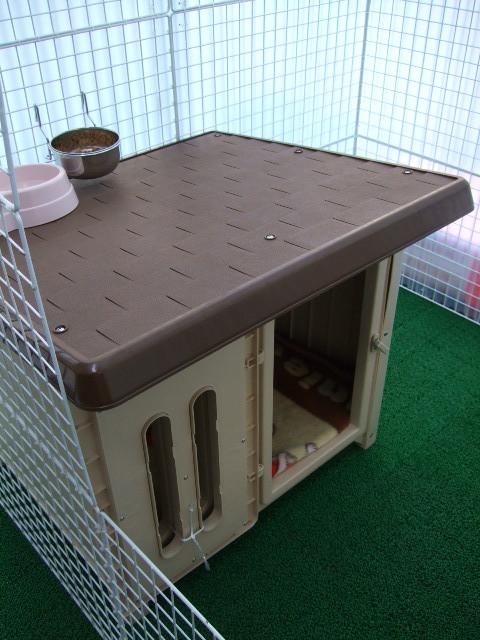 中には小屋(毛布入り)とトイレ・餌場付き♪