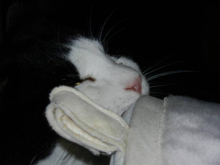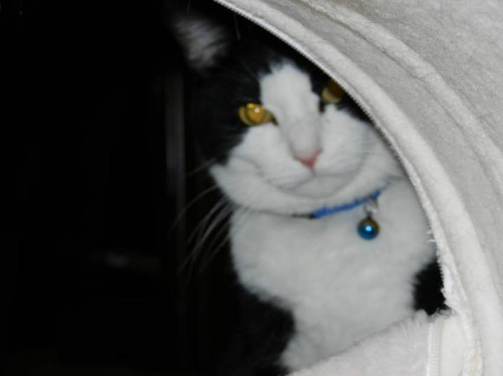 2にゃんの特徴を併せ持った、小さい白黒ハチワレにゃんこ。