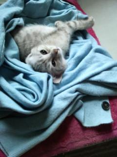 そんなラテの1ヶ月前 主様の服に包まってしか寝ない時期
