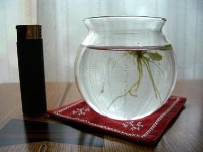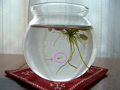 小さなガラスの容器に水草を浮かべ世話をしているのだが、7匹いた赤ちゃんは次々と死んでしまい、現在残るはただ1匹のみ・・・(≧∇≦)