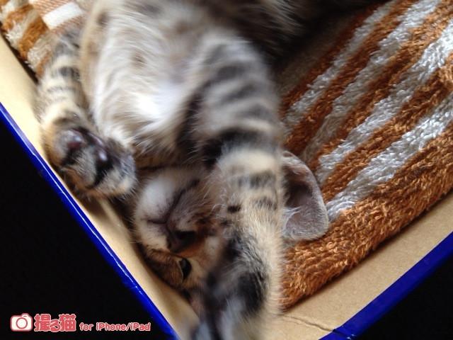 小さい箱に簡易ベッドを作っていますが、そこでも座ったまま目を閉じて我慢します。