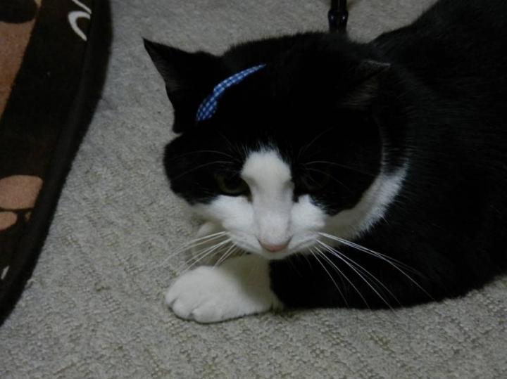 ちゃんと首輪をはめてください(--;)耳にかけちゃいけないでしょ。