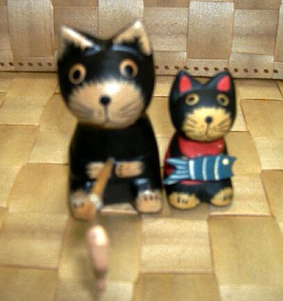 「お魚釣りする猫」「お魚抱っこしてる猫」^^