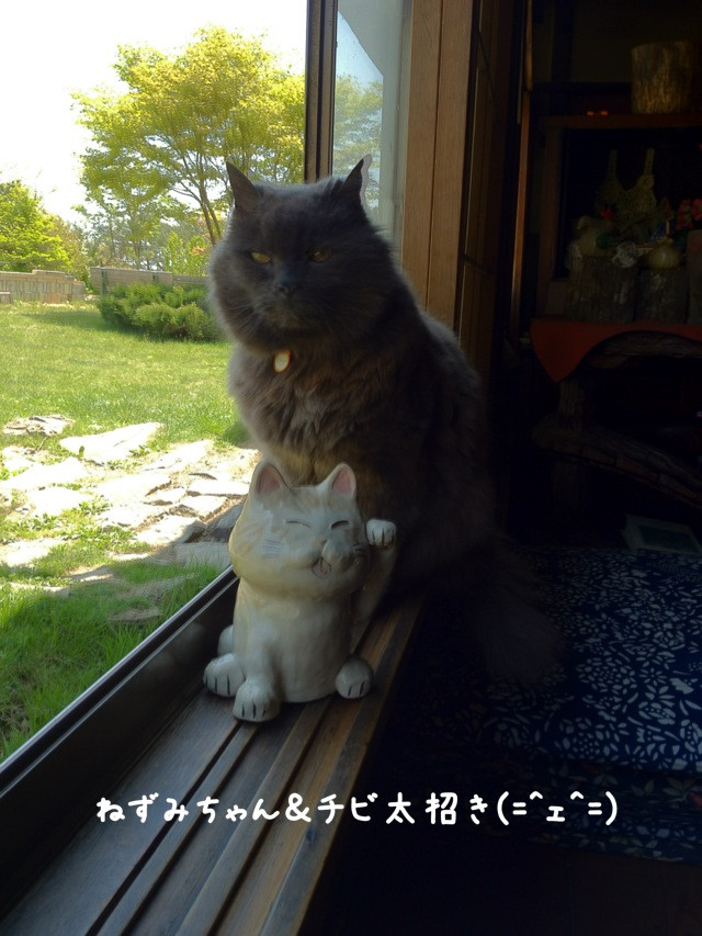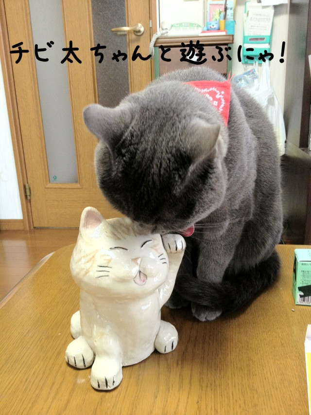 去年の初夏に作ったけれど、乾燥に時間がかかってなかなか窯入れが出来なかったチビ太ちゃんの招き猫。