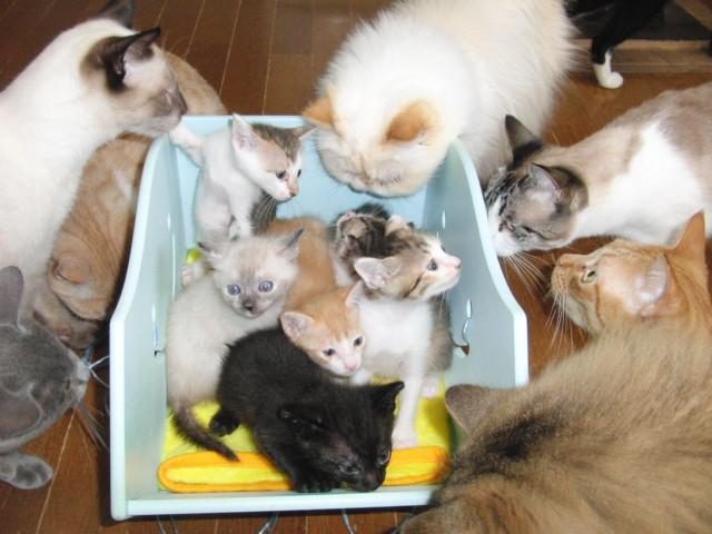みんな無事に育ち、本日 うちの猫たちと 初対面^^
