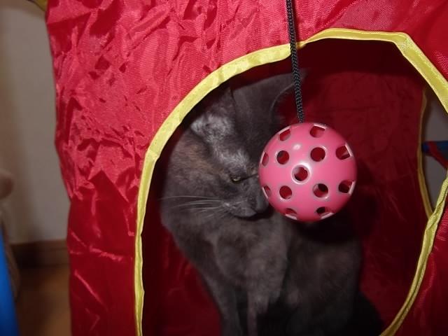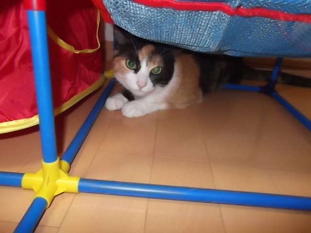 おもちゃに夢中になったり中に入ったりして探検しています。