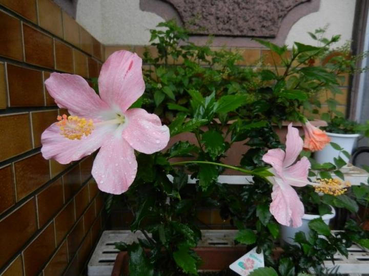 そんな雨の中、可憐に咲くハイビスカス。