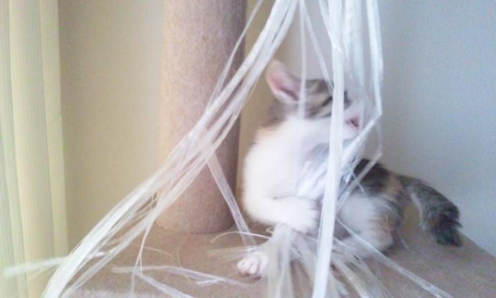 チャーミングなカギしっぽがふさふさ。一生懸命戦ってます。