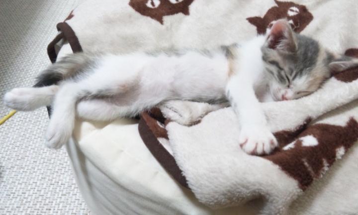 寝てるときに顎が小刻みに動いてた。お母さんが恋しいのかぃ?