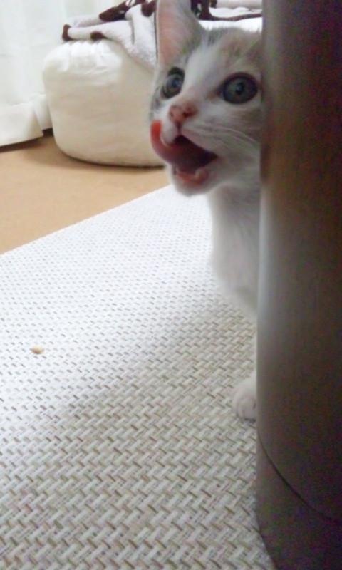 ご飯を食べた後の顔を激写。舌が別の生き物みたいだよぅ。