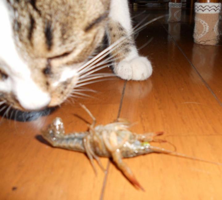 トカゲや蝶ならまだ分かるが、ザリガニって・・・どこまで遠征したんだぁ~~っ??部屋飼いの猫にするなんて夢のまた夢かも。顔も体型も声も可愛いのに(/ω\)。
