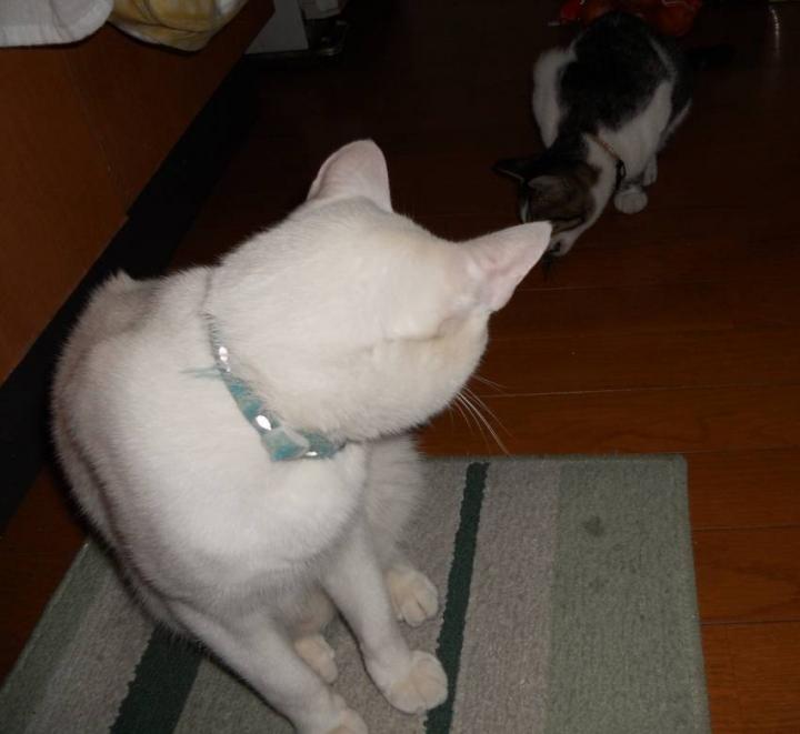 そして一緒に遊びたそうなおっとり王子、あお。獲物を捕るのは下手だが、窓を開けるのは上手い・・・そして、しまより声は可愛い(*´`)。