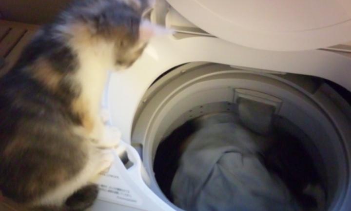 今日は洗濯機の上に到着できました!