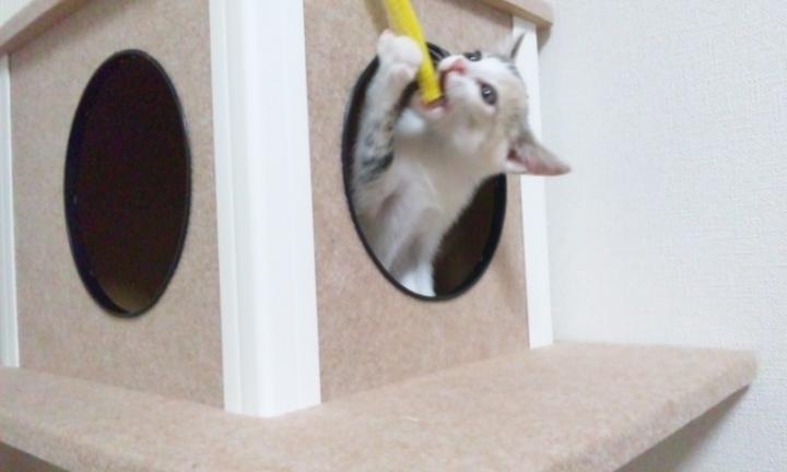 今日は初めてキャットタワーの二段目に登れました!